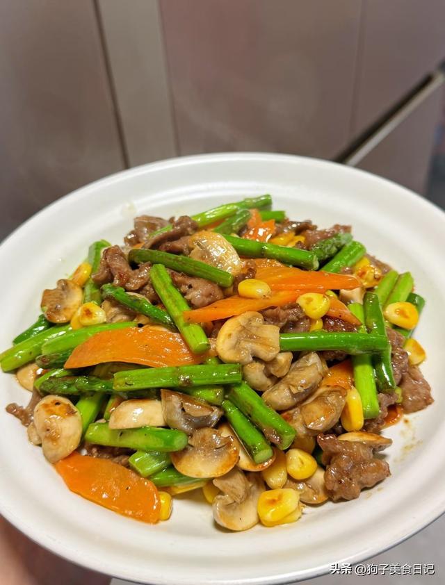3.芦笋口蘑炒牛肉